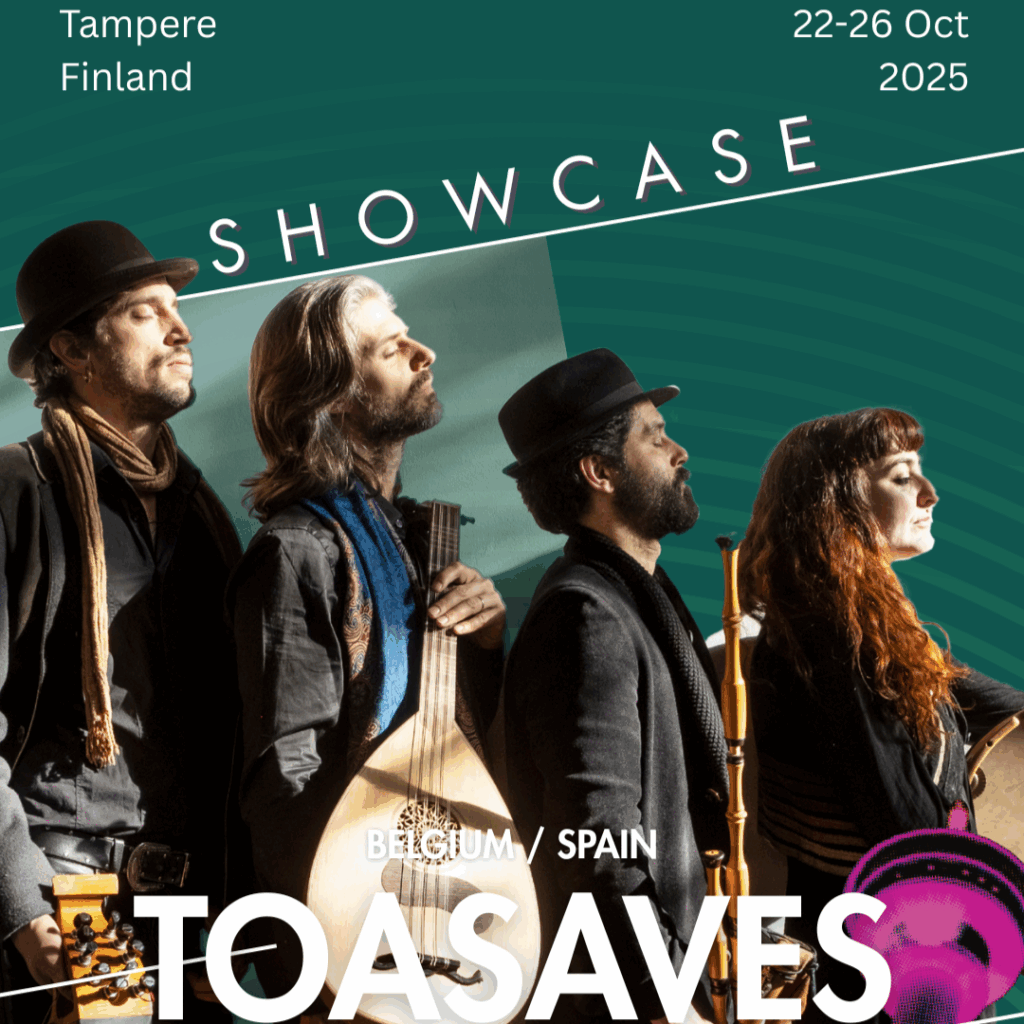 We are delighted that Toasaves, the Belgian collective acclaimed for their boundary-defying interpretation of Flemish folk songs, has been selected to perform a showcase in WOMEX Tampere ! Their debut album, Zwerver, was notably awarded “Best Album” at Flanders Folk Awards 2024.