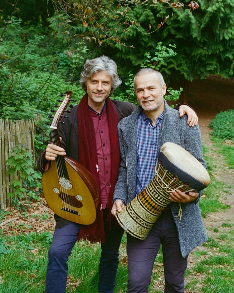 The partnership of Belgian oud player Tristan Driessens and Turkish doholla virtuoso Levent Yıldırım is a journey rooted in mutual respect and a shared sense of freedom when it comes to expressing the joy of being a musician on stage. The duet has been working side by side through a time period of nearly ten years of musical camaraderie, from recording classical Ottoman music with Turkish ney master Sadreddin Özçimi to exploring Indian music from a jazz perspective with French double bass player Brice Soniano and the Soolmaan Quartet. While Tristan Driessens showcases a consistently bright melodic playing style rooted in Turkish classicism, Levent Yıldırım is widely considered the foremost pioneer of the doholla (Egyptian bass darbouka). He is directly responsible of the blossoming of this instrument around the globe. On every other concert, Levent showcases his technically dazzling signature style through extended solos that enhance Tristan’s compositions. Together, the duet conveys to the listening experience a guaranteed effects of surprise.